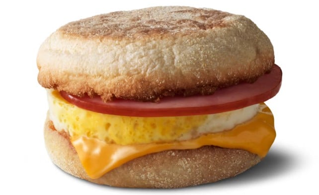 McDonald’s Egg McMuffin features a freshly cracked, 100 percent U.S.-sourced, cage-free egg, Canadian bacon, American cheese, and butter on a toasted English muffin.