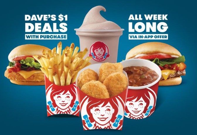 Wendy’s is running a new Dave’s $1 Deals promotion where registered mobile app users can get a fan-favorite menu item for $1 every day with any purchase in the app from April 15 through April 20, 2024.