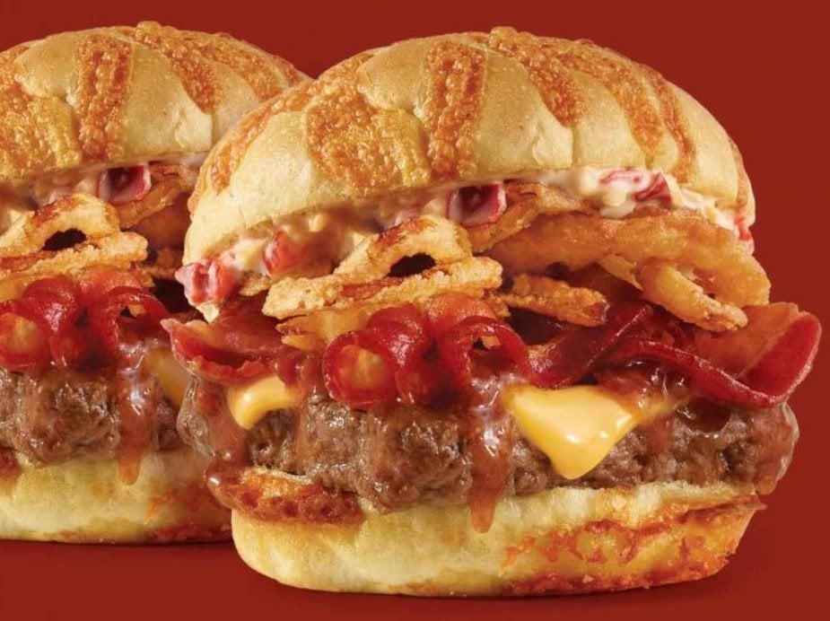 The new Big Bacon Cheddar Cheeseburger features the chain’s fresh, never frozen beef patty topped with applewood-smoked bacon, topped with cheddar cheese, bacon jam, crispy onions, and a slice of melted American cheese, all on a pillow soft toasted cheddar bun.